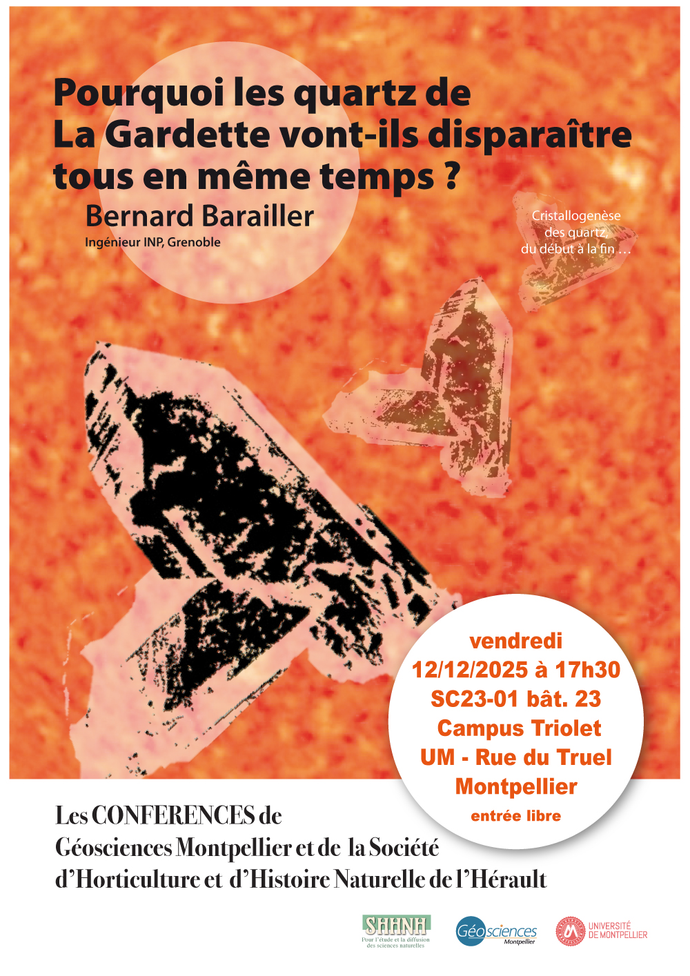 Intitulée « Pourquoi les quartz de La Gardette vont-ils disparaître tous en même temps ? », elle sera donnée par Bernard Barailler, ingénieur INP- Grenoble.