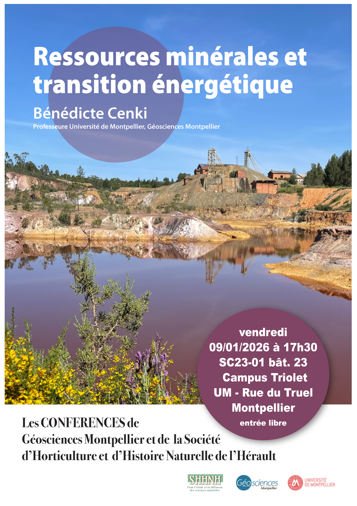 Cette conférence fait parti du cycle de conférences de la SHHNH en partenariat avec Géosciences Montpellier.
