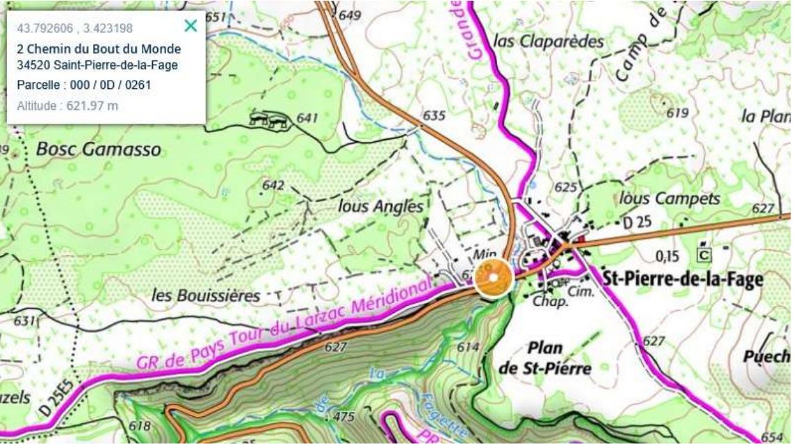 Rdv 2 : 9 h 30, rond-point entre les D25 et D9 à l’ouest de St-Pierre-de-la-Fage, au départ de la petite route D25E5, GR de pays Tour du Larzac méridional (cf. carte à cliquer).